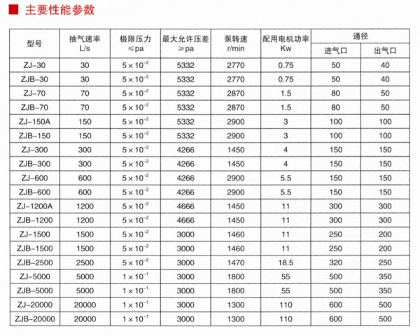 能在很宽的压强范围(1-1.3×102Pa)有较大的抽速;泵腔无油,避免油蒸汽污染真空系统;节能、维护简便;不可单独使用,必须配置前级泵(须达到一定的启动压力)。